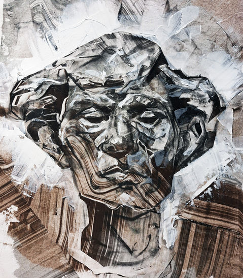 Cette série rend hommage à la sculpture. Réalisés à partir de pigments naturels et de pierres précieuses telles que le lapis-lazuli ou la malachite, ces tableaux intègrent aussi, plus récemment, du marbre utilisé comme matière picturale. Cette approche établit un lien poétique entre le sujet et mon interprétation : peindre le marbre avec le marbre lui-même. Fruit de recherches personnelles, ce travail explore des matériaux anciens pour donner naissance à une œuvre résolument contemporaine.